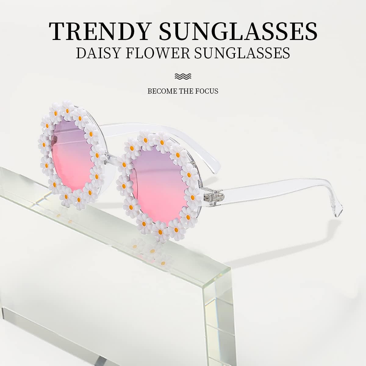 Dollger Daisy Sunglasses for Women Flower Round Fashion Rave Party Disco Fun Festival Retro Sunglasses Girls Gift…