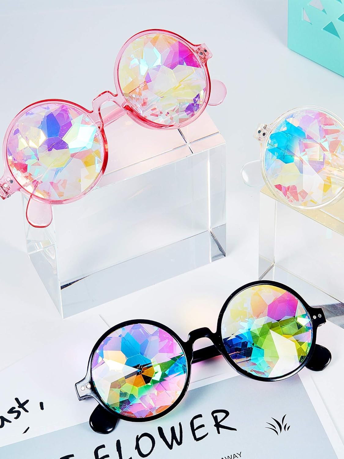Frienda 3 Pairs Kaleidoscope Rave Glasses Festivals Goggle Rainbow Sunglass Kaleidoscope Sunglass Prism Refraction Glasses