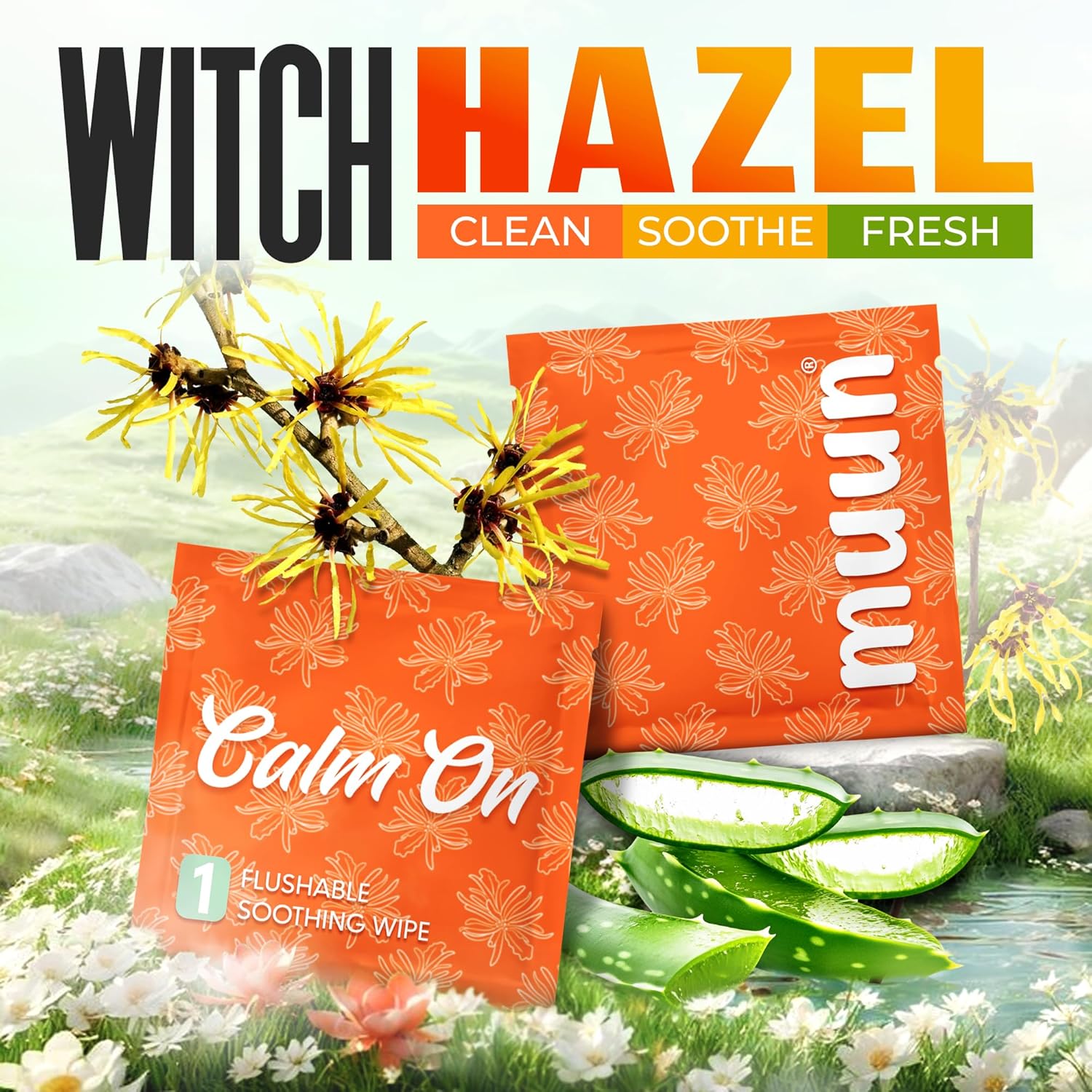 Muun Witch Hazel Wipes – 30 Counts Individually – Soothing Feminine & Hemorrhoids Wipes – Postpartums Support – Wet Wipes for Intimate, Butt – Alcohol Free & Plant Based – Flushable & Travel Friendly